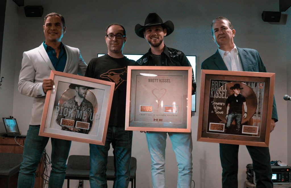 Brett Kissel was a big winner at last weekend’s CCMA Awards in Saskatoon, SK, taking home four awards including Male Artist, Interactive Artist, and Country Music Program or Special Of The Year. In addition to his Video Of The Year trophy for the ballad “I Didn’t Fall In Love With Your Hair,” the Alberta-born country star was surprised with a Gold plaque for the single at Saturday’s Invictus Entertainment Group party.