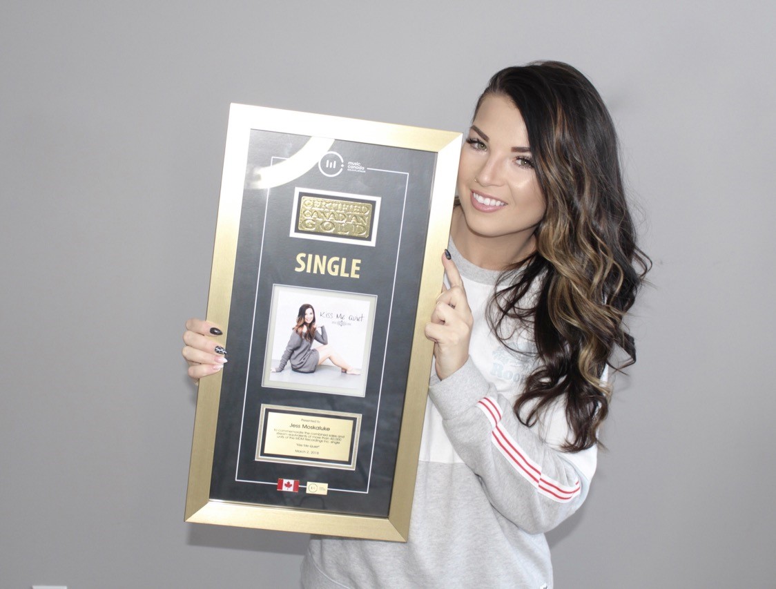 Canadian country star Jess Moskaluke was surprised with a Gold Single Award plaque from MDM Recordings for her single “Kiss Me Quiet” during JUNO weekend in Vancouver. “Kiss Me Quiet” is the Saskatchewan singer-songwriter’s second solo Gold track certification, with “Cheap Wine & Cigarettes” earning Platinum status in 2016. Moskaluke has also received a Gold certification for her collaboration with Paul Brandt on “I’m An Open Road,” which was certified in June of 2017.