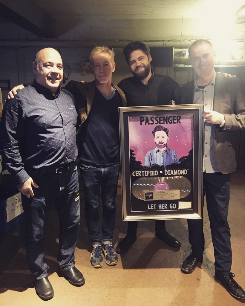 Prior to his sold-out show at Vancouver’s Vogue Theatre, English singer-songwriter Passenger was surprised with a custom Canadian Diamond award plaque by Nettwerk Music Group for his 2012 hit single “Let Her Go.” The hit song can be found on Passenger’s debut studio album All The Little Lights, which reached Platinum status in Canada in 2014.