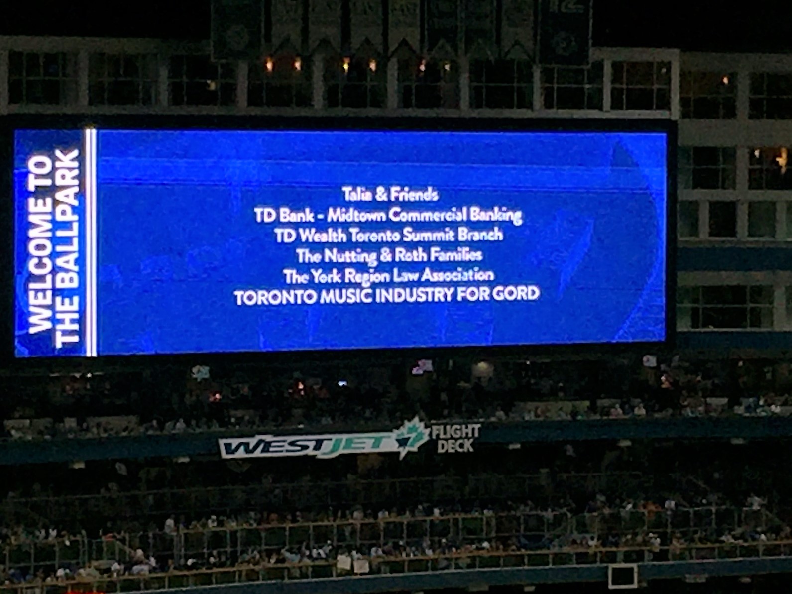 More than 170 tickets were sold to the Blue Jays game, which included a donation to the Downie Fund with purchase. The event was organized by Jon Box of Universal Music Canada, who hopes the event can continue again next year and surpass 200 ticket sales.